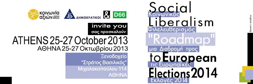Στο πλαίσιο αυτό, η “κοινωνία αξιών” και οι “Δημοκρατικοί”, μαζί με τους Ολλανδούς και τους Δανούς φίλους τους, σας προσκαλούν στο συνέδριο «Κοινωνικός Φιλελευθερισμός: Μια διαδρομή προς τις Ευρωπαϊκές Εκλογές του 2014», που θα πραγματοποιηθεί στο ξενοδοχείο Στράτος Βασιλικός της Αθήνας, από 25 έως και 27 Οκτωβρίου 2013.