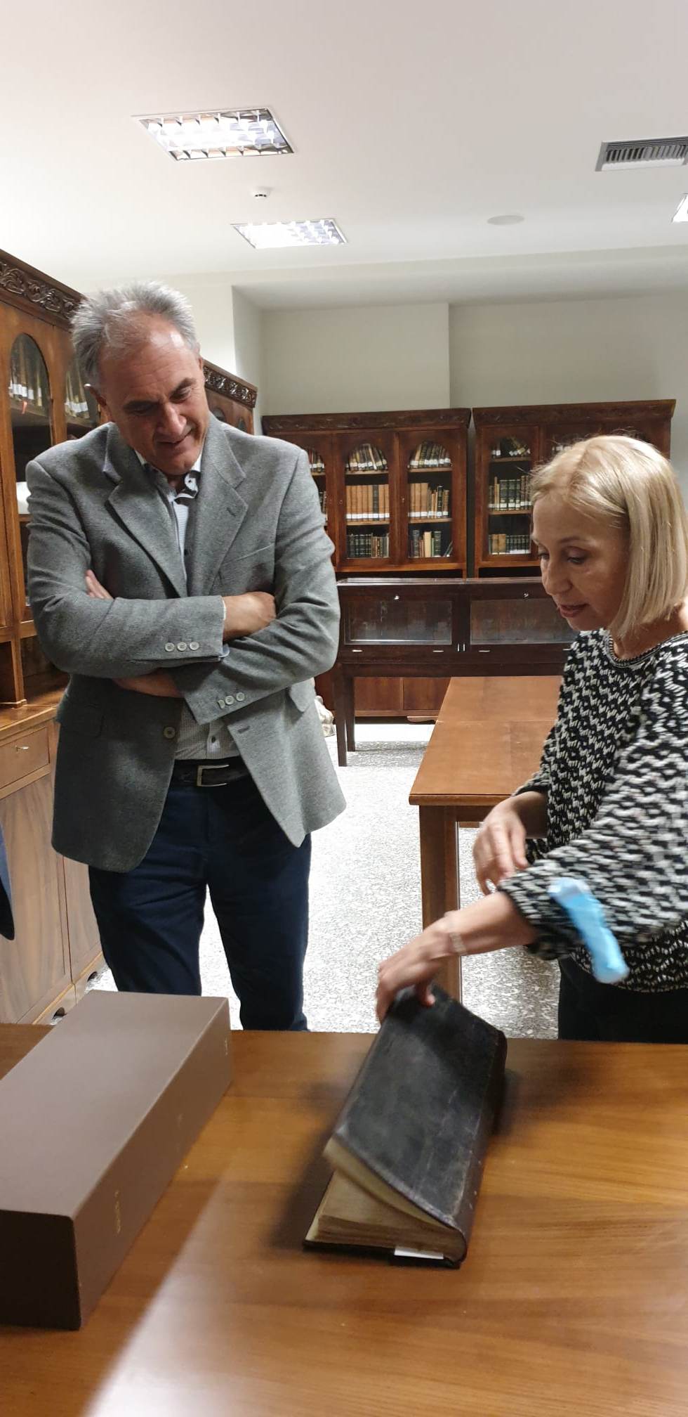 Τέλος το κλιμάκιο και ο Πρόεδρος ξεναγήθηκαν από την υπεύθυνη στην «Κοβεντάρειο» Δημοτική Βιβλιοθήκη Κοζάνης (ΚΔΒΚ),της οποίας η ιστορία ξεκινά το 17ο αιώνα συγκαταλέγεται δε στις πιο σημαντικές βιβλιοθήκες της Ελλάδας, κυρίως λόγω του μεγάλου αριθμού παλιών βιβλίων που περιέχει, των χειρογράφων, του αρχειακού υλικού. Αξίζει εδώ να σημειώσουμε ότι η «Κοβεντάρειος» δίνει στέγη τόσο στα παλαίτυπα «Μετά τα Φυσικά» και «Περί ζώων ιστορίας» του Αριστοτέλη (εκτύπωση 1497), στη «Χάρτα του Ρήγα» (εκτύπωση 1796-97), στον Παγκόσμιο χάρτη του Άνθιμου Γαζή (1800), στην πρώτη ελληνική εφημερίδα των αδελφών Μαρκίδων Πούλιου («Εφημερίς» 1790-1797) όσο και σε 120.000 χειρόγραφα, κώδικες, χάρτες, φυλλάδια και βιβλία.